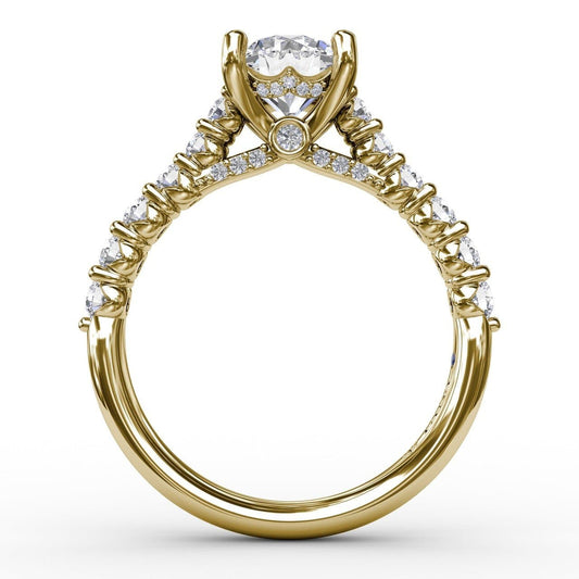 Classic Oval Diamond Solitaire Engagement Ring With Hidden Pavé Halo
