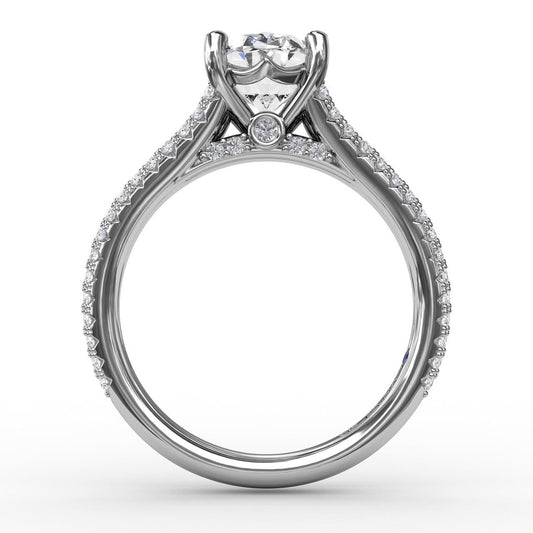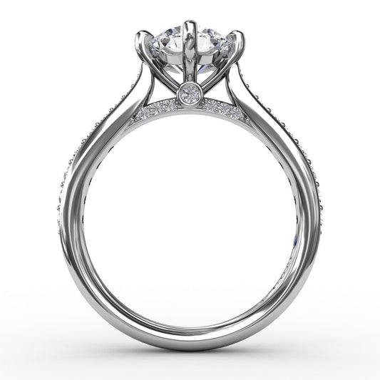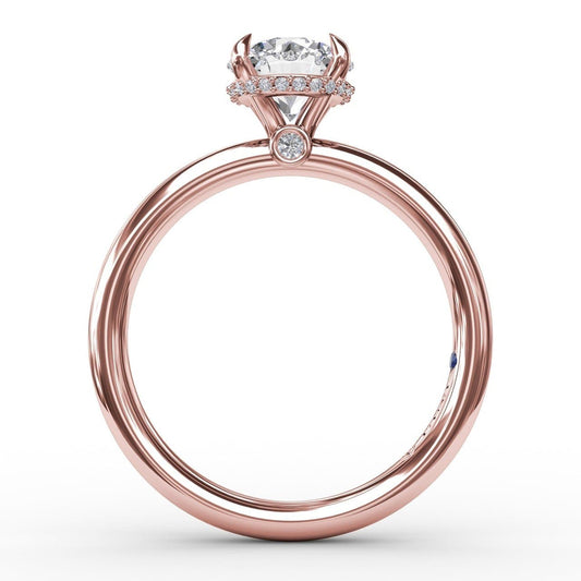 Classic Round Diamond Solitaire Engagement Ring With Hidden Pavé Halo