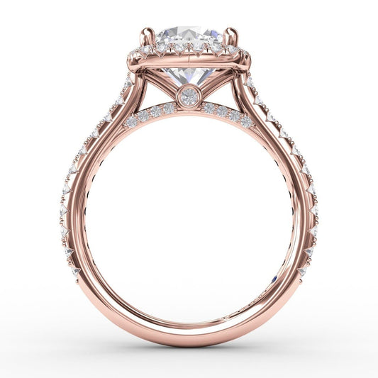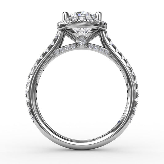 Cushion-Shaped Halo Diamond Engagement Ring with Diamond Band