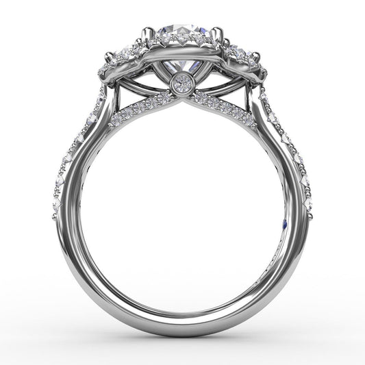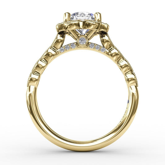 Round Diamond Engagement With Floral Halo and Milgrain Details