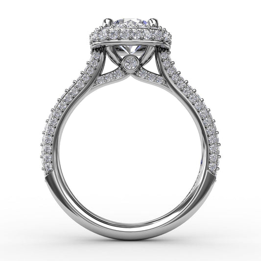 Oval Diamond Halo Engagement Ring With Diamond Band