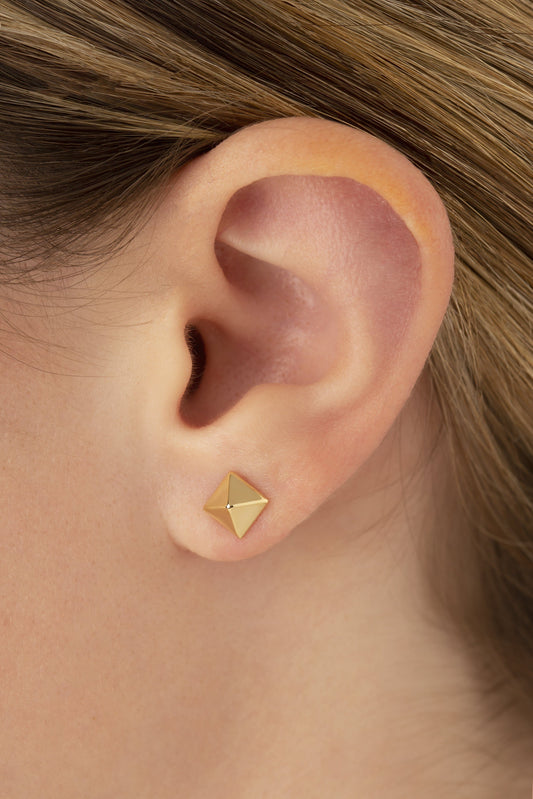 14K Yellow Gold 6mm Pyramid Post Earrings