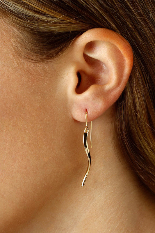 14K Yellow Gold Long T/Drop H/Wire Earrings