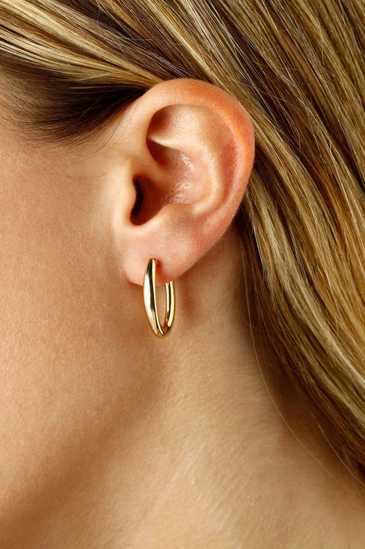 14KG Sm. Sm.ooth Round Oval Hoop W/Sd Earrings