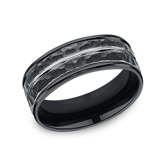 8mm Black Cobalt Hammered Finish Center Groove Wedding Band